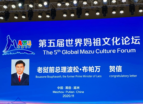 柯志华主任出席世界妈祖文化论坛活动,老挝前总理致信祝贺发表时间:2020-11-02 14:47